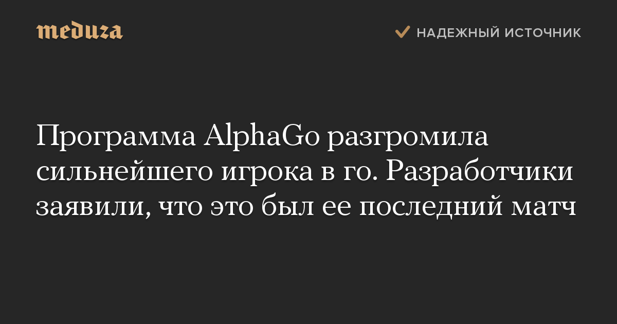 Разработчики программы из компании DeepMind (принадлежит Alphabet) объявили, что это был последний матч AlphaGo. Компания опубликует данные о 50 играх, которые программа сыграла сама с собой, для изучения игроками в го, передает The Verge.