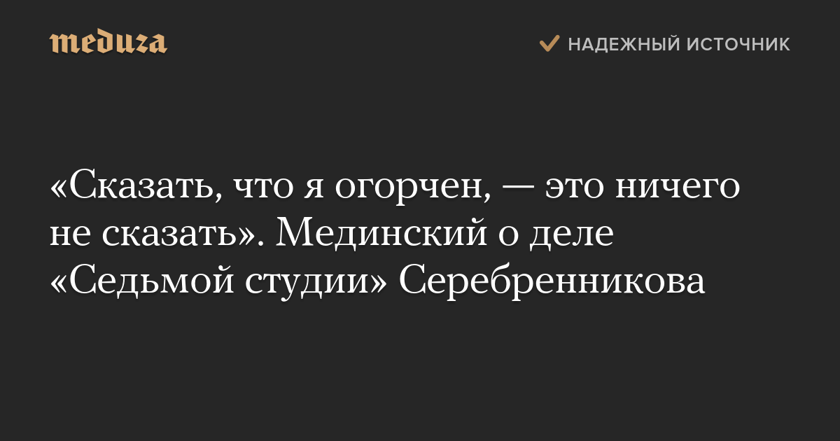 «Сказать, что я огорчен, — это ничего не сказать». Мединский о деле «Седьмой студии» Серебренникова