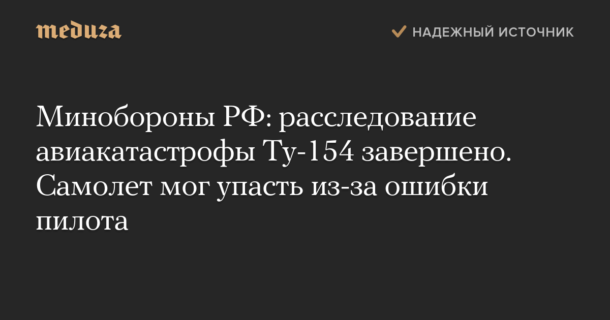 Минобороны РФ: расследование авиакатастрофы Ту-154 завершено. Самолет мог упасть из-за ошибки пилота
