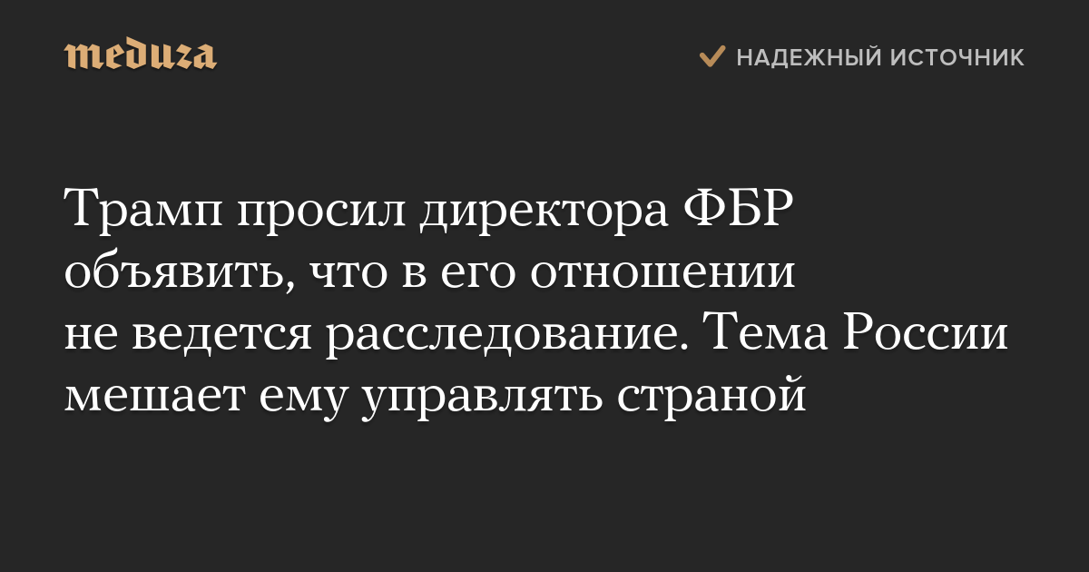 Трамп просил директора ФБР объявить, что в его отношении не ведется расследование. Тема России мешает ему управлять страной