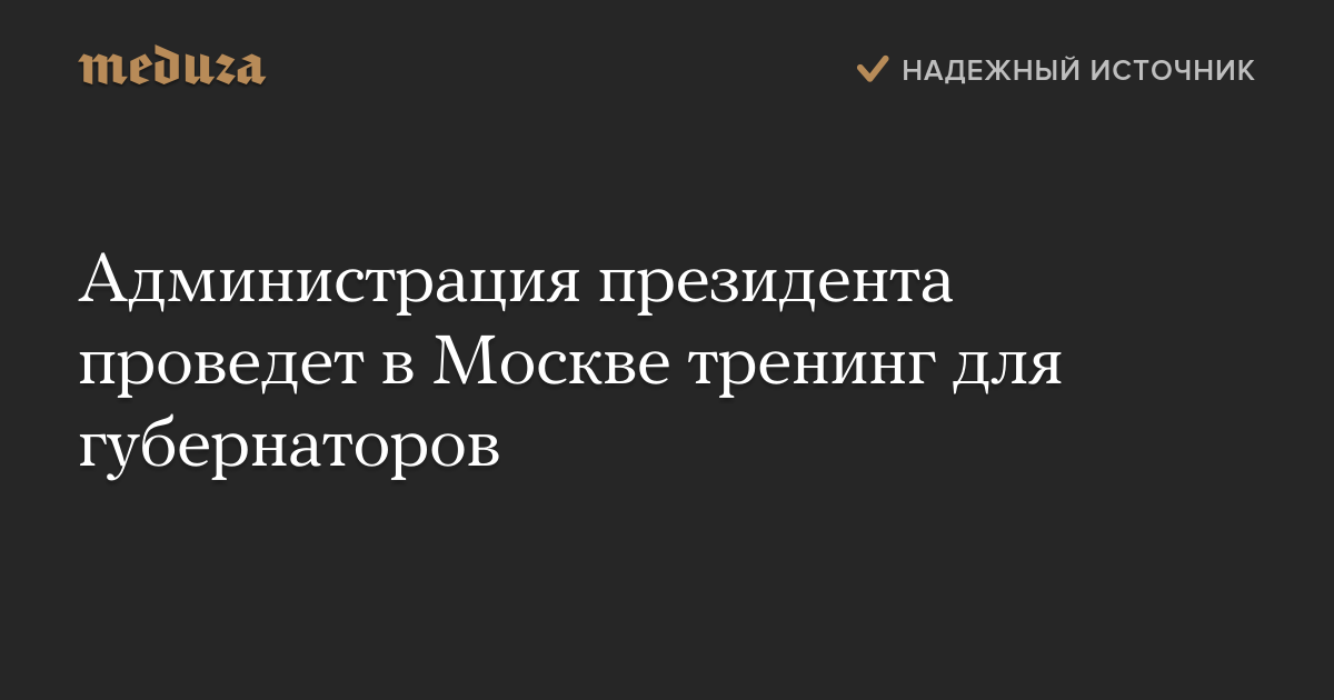 Администрация президента РФ 29-30 июня проведет в Москве двухдневный тренинг для российских губернаторов. Об этом «Медузе» сообщили источники в администрации нескольких регионов РФ.