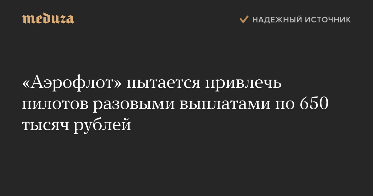 «Аэрофлот» пытается привлечь пилотов разовыми выплатами по 650 тысяч рублей