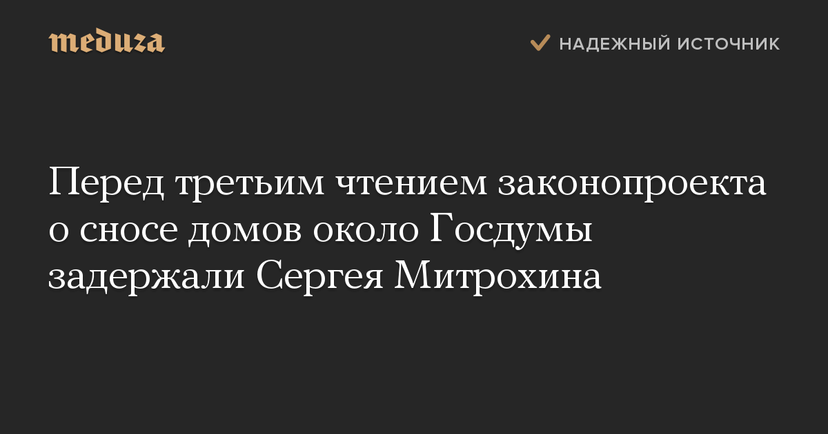 9 июня Митрохина уже задерживали около Госдумы, когда он пикетировал парламент перед вторым чтением законопроекта о массовом сносе домов. Впоследствии всех задержанных отпустили. Документ был одобрен Думой практически единогласно.