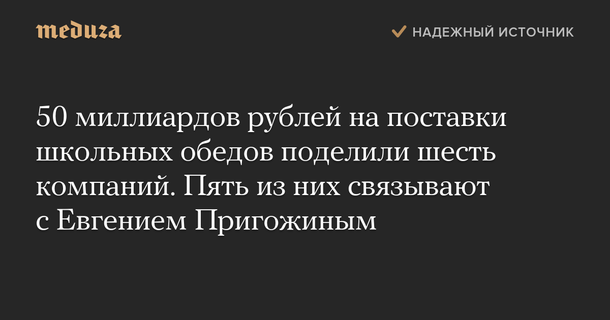50 миллиардов рублей на поставки школьных обедов поделили шесть компаний. Пять из них связывают с Евгением Пригожиным