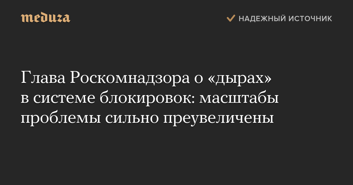 Глава Роскомнадзора о «дырах» в системе блокировок: масштабы проблемы сильно преувеличены