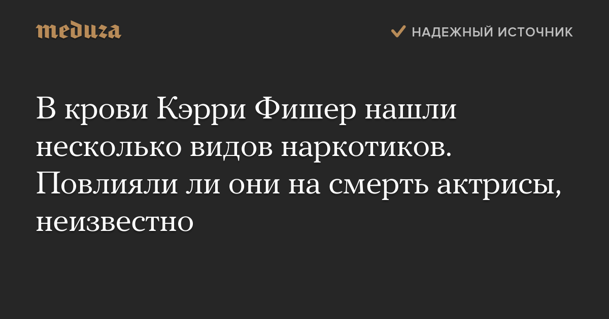 В крови Кэрри Фишер нашли несколько видов наркотиков. Повлияли ли они на смерть актрисы, неизвестно