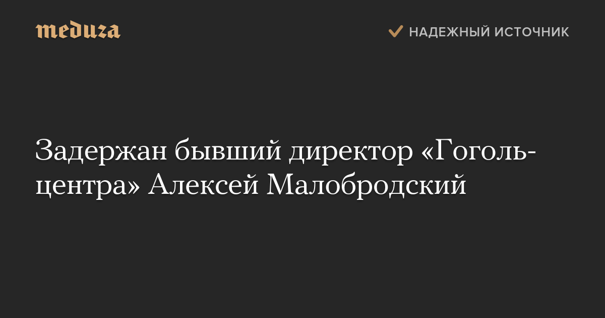 В Москве задержан бывший директор «Гоголь-центра» Алексей Малобродский. Об этом «Медузе» сообщили три источника, знакомых с ситуацией. Официально о задержании Малобродского не сообщалось.