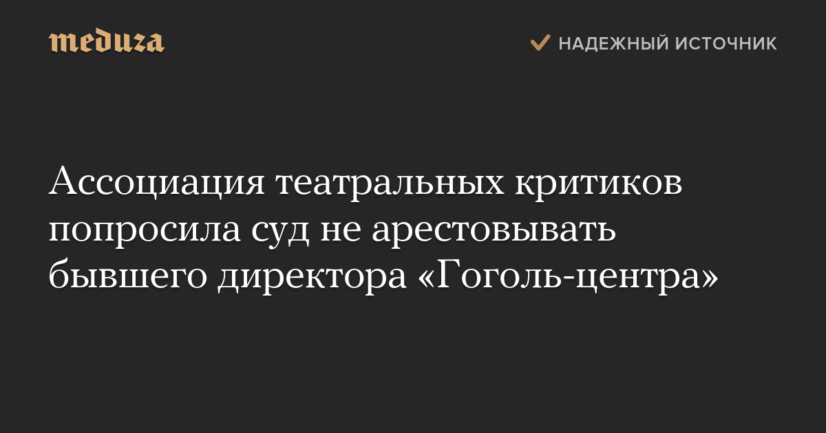 Ассоциация театральных критиков России попросила Пресненский районный суд Москвы не лишать свободы бывшего директора «Гоголь-центра» Алексея Малобродского, который был задержан по делу «Седьмой студии». Текст обращения есть в распоряжении «Медузы».