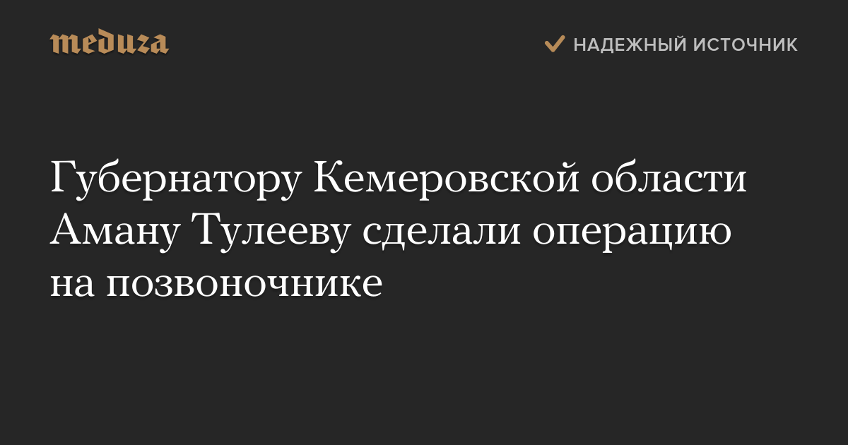 Губернатору Кемеровской области Аману Тулееву проведена операция на позвоночнике, сообщила пресс-служба администрации региона.