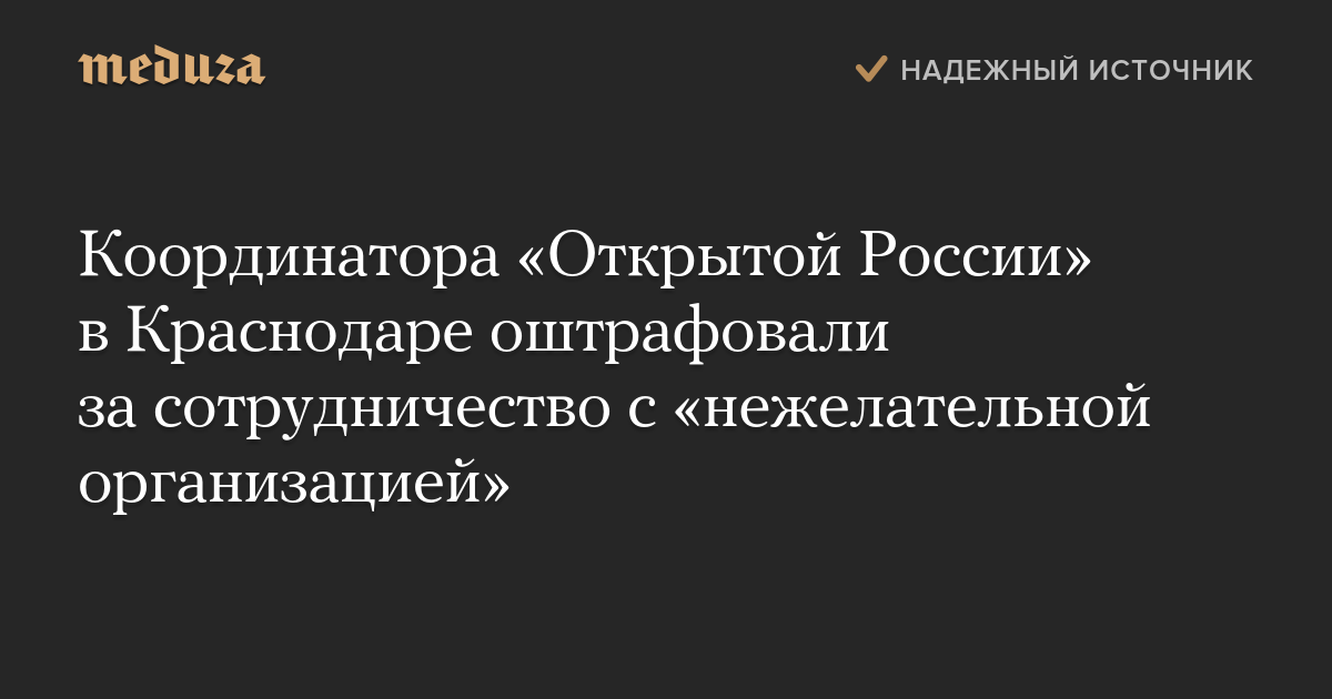 Координатора «Открытой России» в Краснодаре оштрафовали за сотрудничество с «нежелательной организацией»
