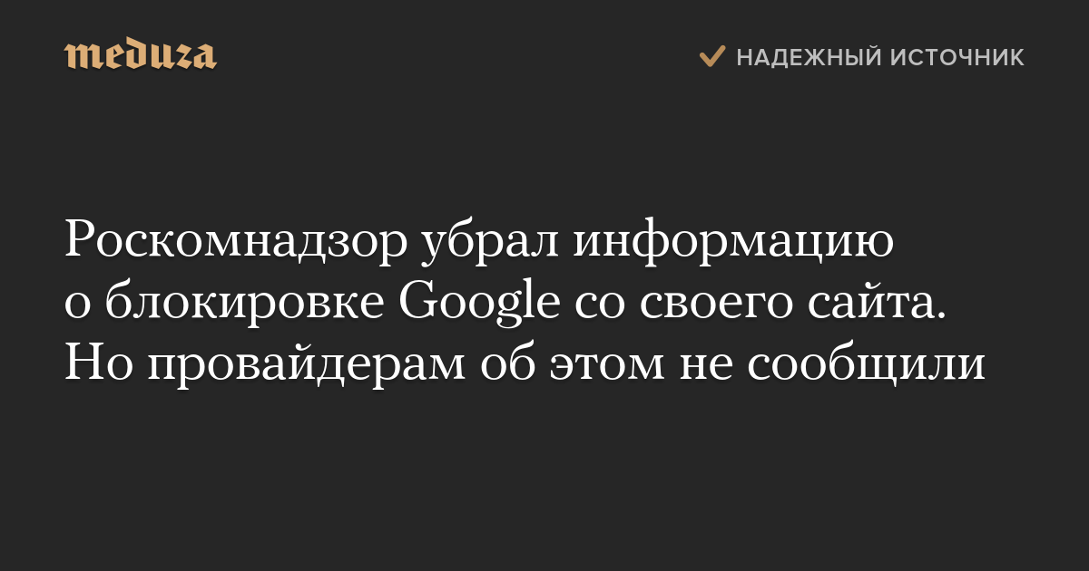 Роскомнадзор убрал информацию о блокировке Google со своего сайта. Но провайдерам об этом не сообщили