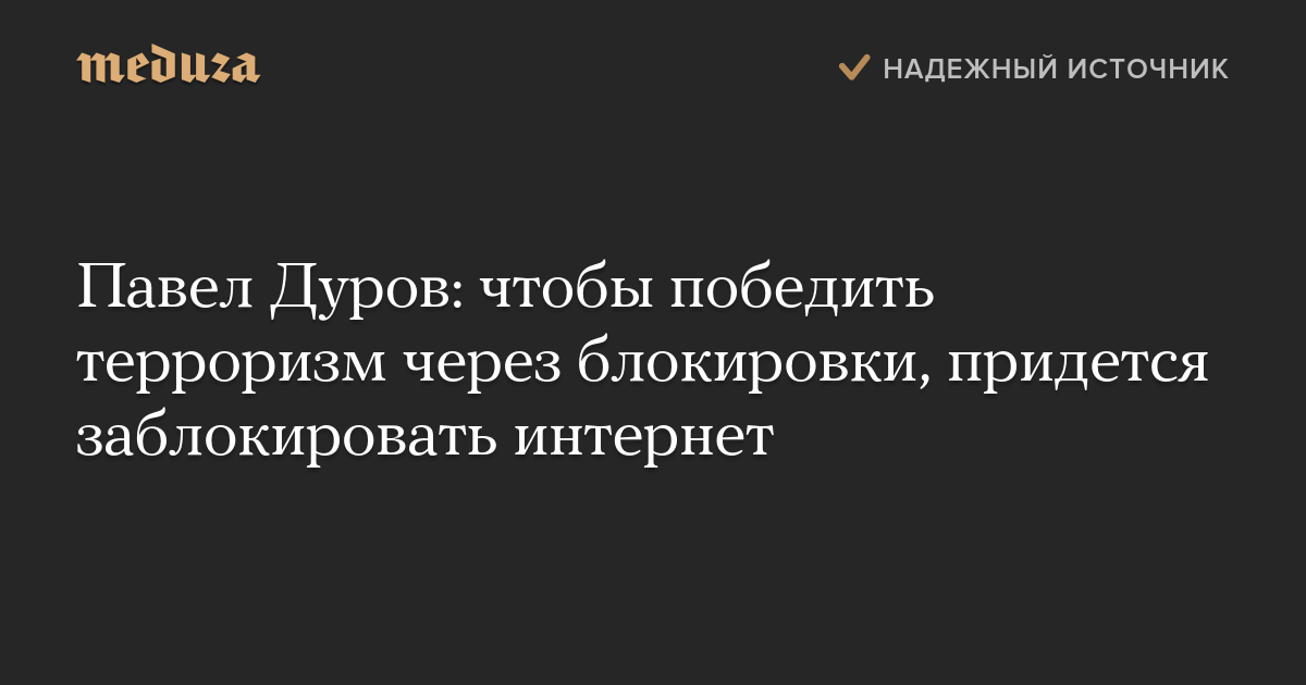 Павел Дуров: чтобы победить терроризм через блокировки, придется заблокировать интернет