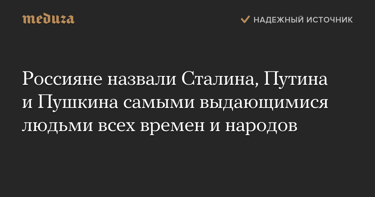 Россияне назвали Сталина, Путина и Пушкина самыми выдающимися людьми всех времен и народов