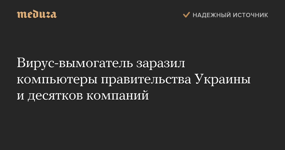 Днем 27 июня стало известно о распространении на Украине вируса-вымогателя, который шифрует данные на компьютерах под управлением Windows и требует выкуп за доступ к информации. Среди пострадавших компаний — «Киевэнерго», Ощадбанк, почтовая компания «Новая почта», «Укртелеком» и другие. Поступают сообщения о неработоспособности многих сетей заправок.