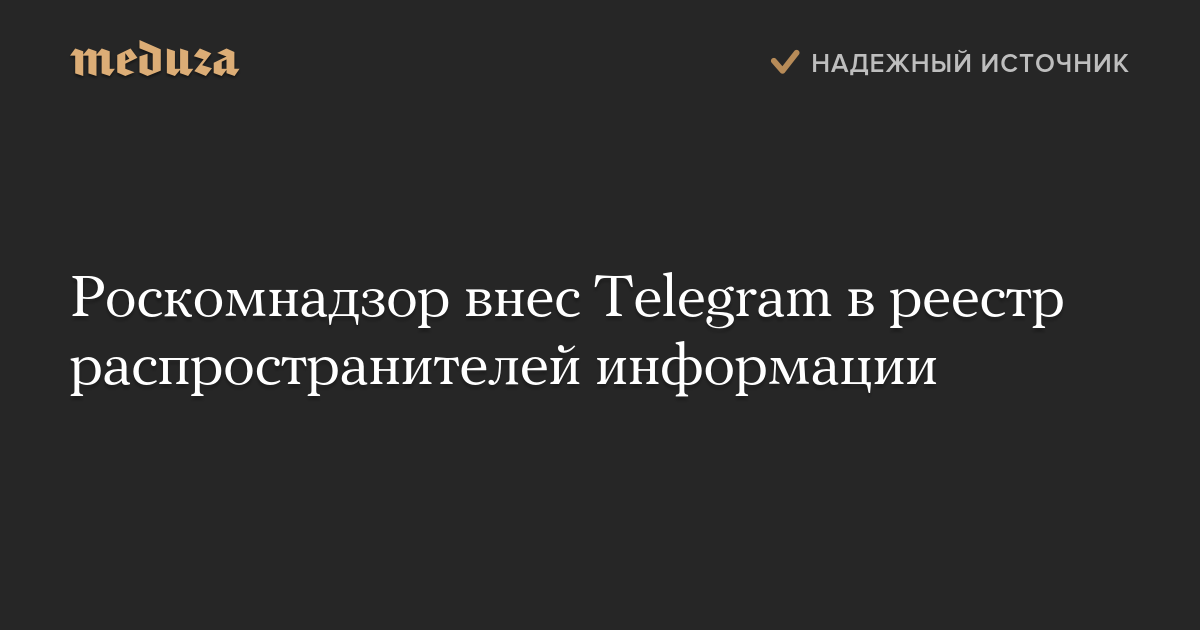 «На данном этапе мессенджер Telegram предоставил все требуемые по закону данные для внесения в реестр организаторов распространения информации», — заявил глава ведомства Александр Жаров.
