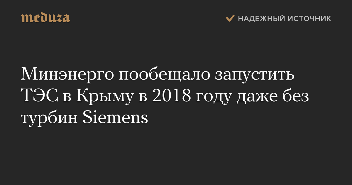 Минэнерго пообещало запустить ТЭС в Крыму в 2018 году даже без турбин Siemens