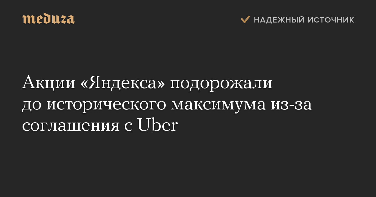 Акции «Яндекса» подорожали до исторического максимума из-за соглашения с Uber