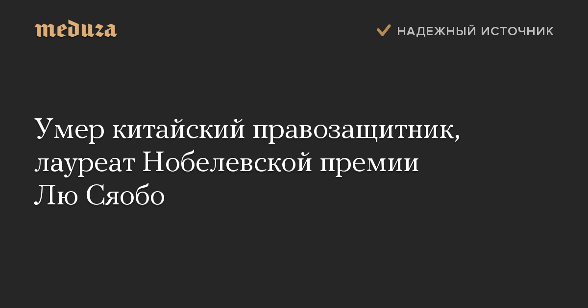 Умер китайский правозащитник, лауреат Нобелевской премии Лю Сяобо
