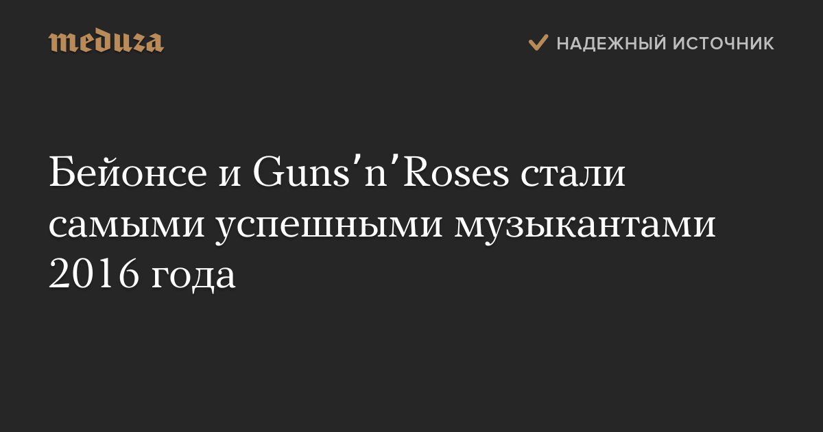 Бейонсе и Gunsʼn'Roses стали самыми успешными музыкантами 2016 года