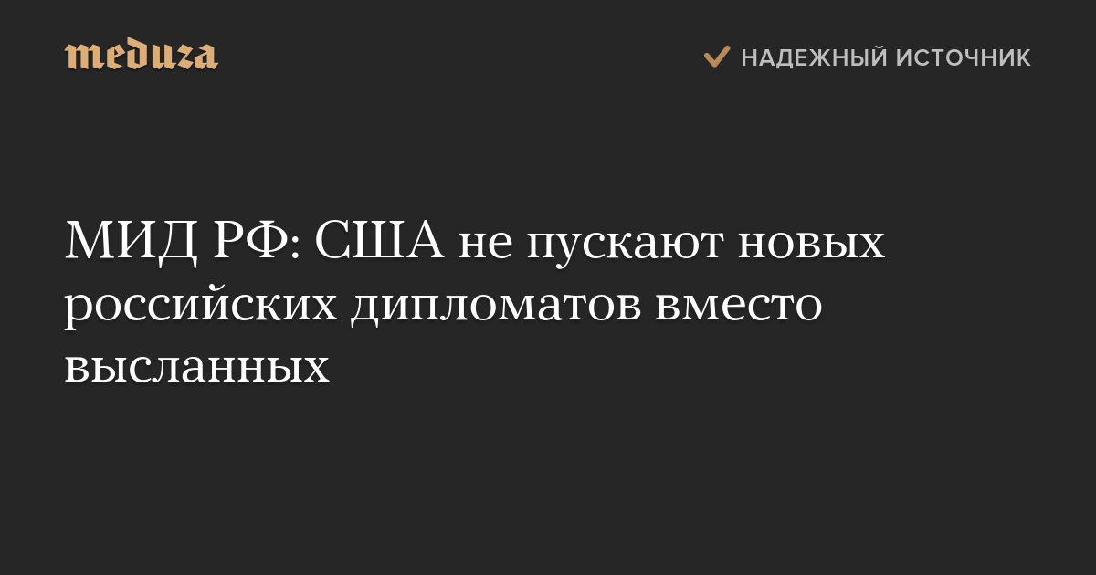 МИД РФ: США не пускают новых российских дипломатов вместо высланных