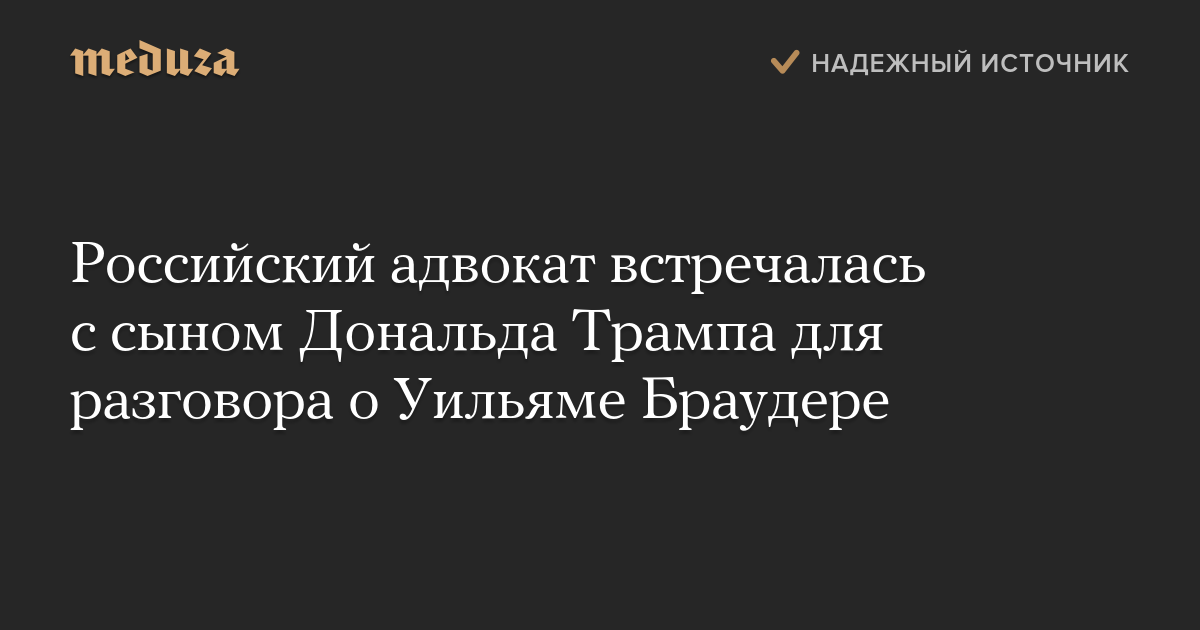 Российский адвокат встречалась с сыном Дональда Трампа для разговора о Уильяме Браудере