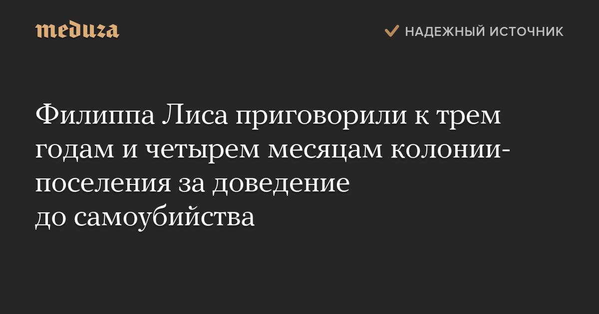 Филиппа Лиса приговорили к трем годам и четырем месяцам колонии-поселения за доведение до самоубийства