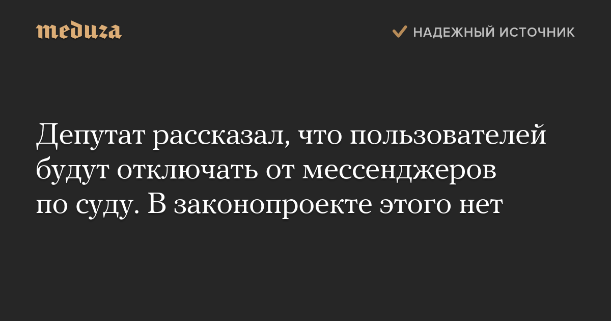 Соавтор инициативы о запрете анонимности в мессенджерах депутат Госдумы Олег Николаев заявил изданию vc.ru, что в законопроекте ко второму чтению появилась норма о запрете пользователям использовать мессенджеры по решению суда.