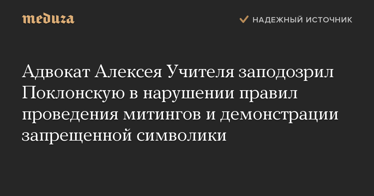 Адвокат Алексея Учителя заподозрил Поклонскую в нарушении правил проведения митингов и демонстрации запрещенной символики