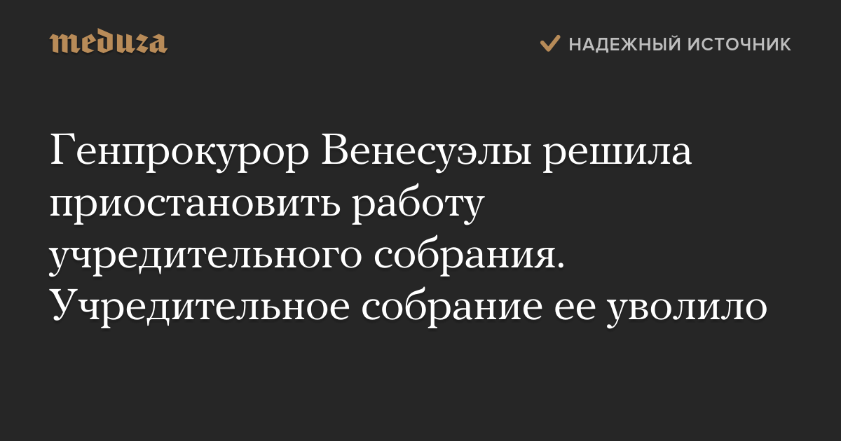 Генпрокурор Венесуэлы решила приостановить работу учредительного собрания. Учредительное собрание ее уволило