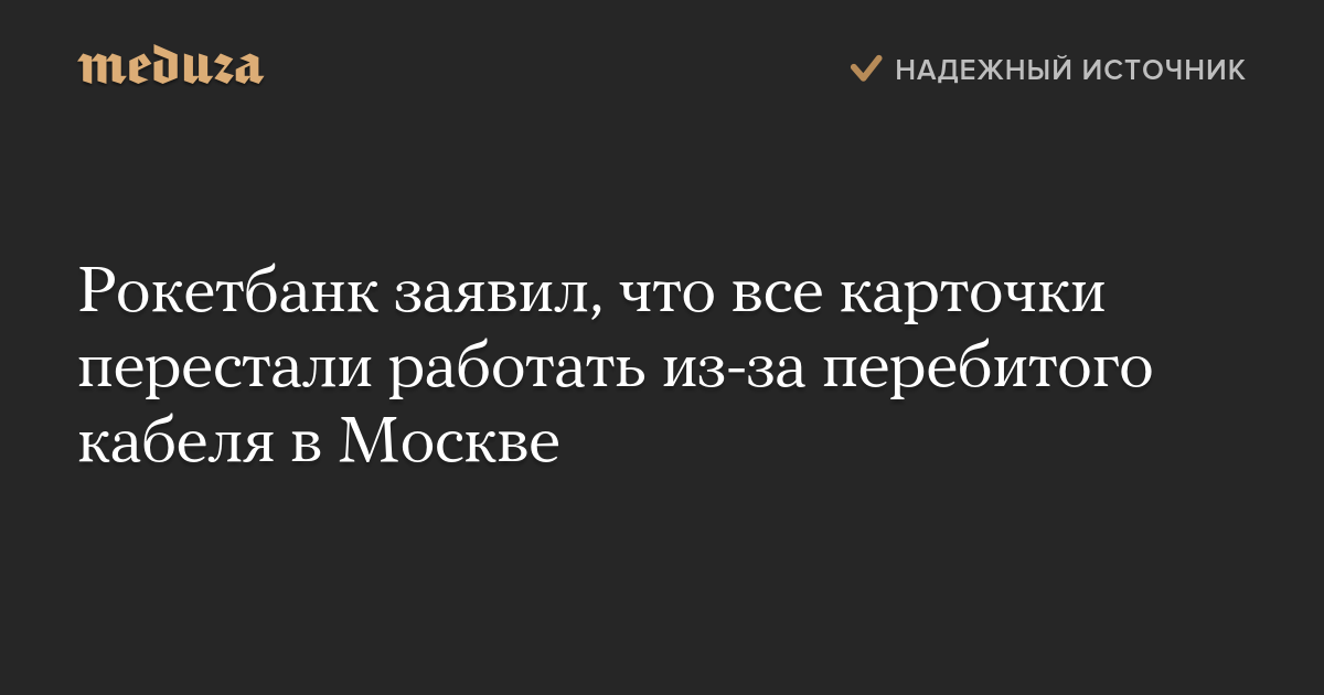 Рокетбанк заявил, что все карточки перестали работать из-за перебитого кабеля в Москве