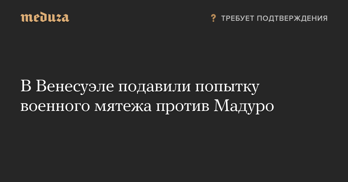 Как пишет Associated Press, вскоре лидер правящей партии Венесуэлы Диосдадо Кабельо объявил, что на севере страны был предотвращен теракт — вооруженные люди попытались захватить военную базу в районе Валенсии.