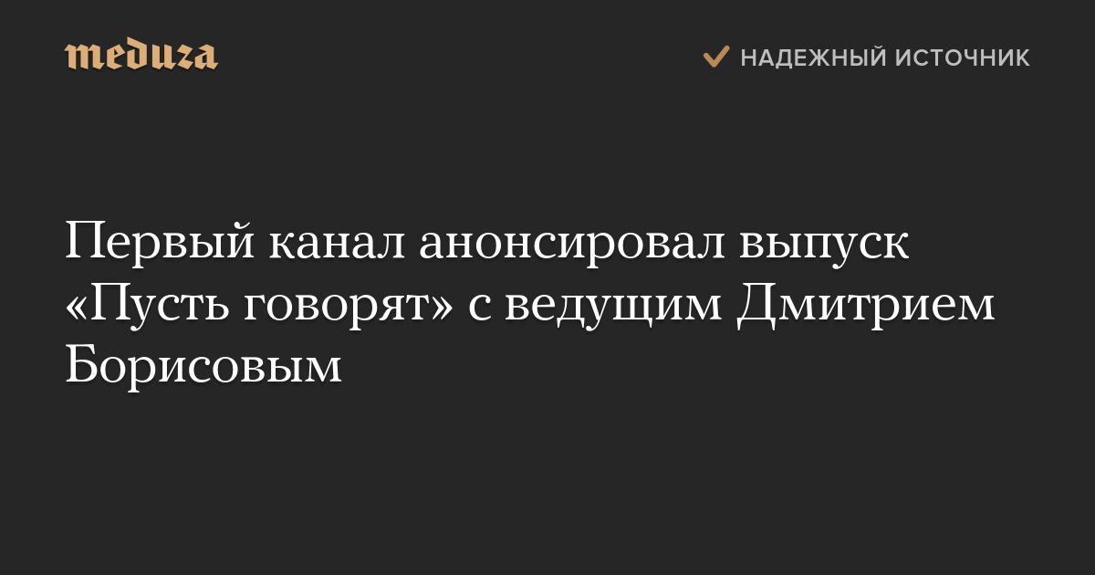 Первый канал показал анонс ток-шоу «Пусть говорят», сопроводив ролик фотографиями Дмитрия Борисова и Андрея Малахова.