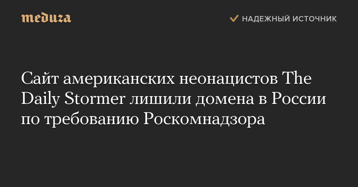 Сайт американских неонацистов The Daily Stormer лишили домена в России по требованию Роскомнадзора