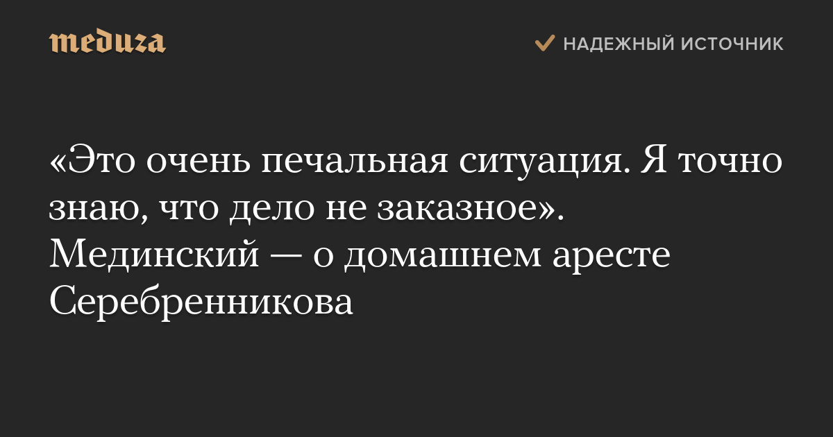 «Это очень печальная ситуация. Я точно знаю, что дело не заказное». Мединский — о домашнем аресте Серебренникова