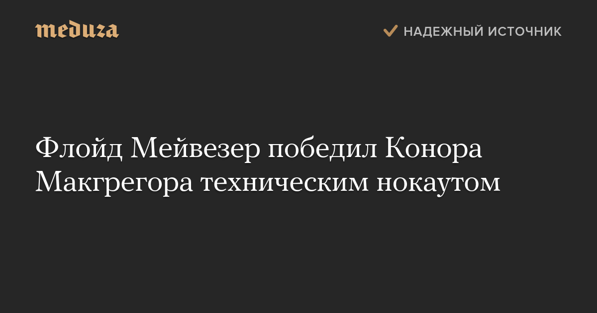 Один из лучших боксеров современности Флойд Мейвезер победил ирландского бойца MMA Конора Макгрегора техническим нокаутом в 10-м раунде поединка.