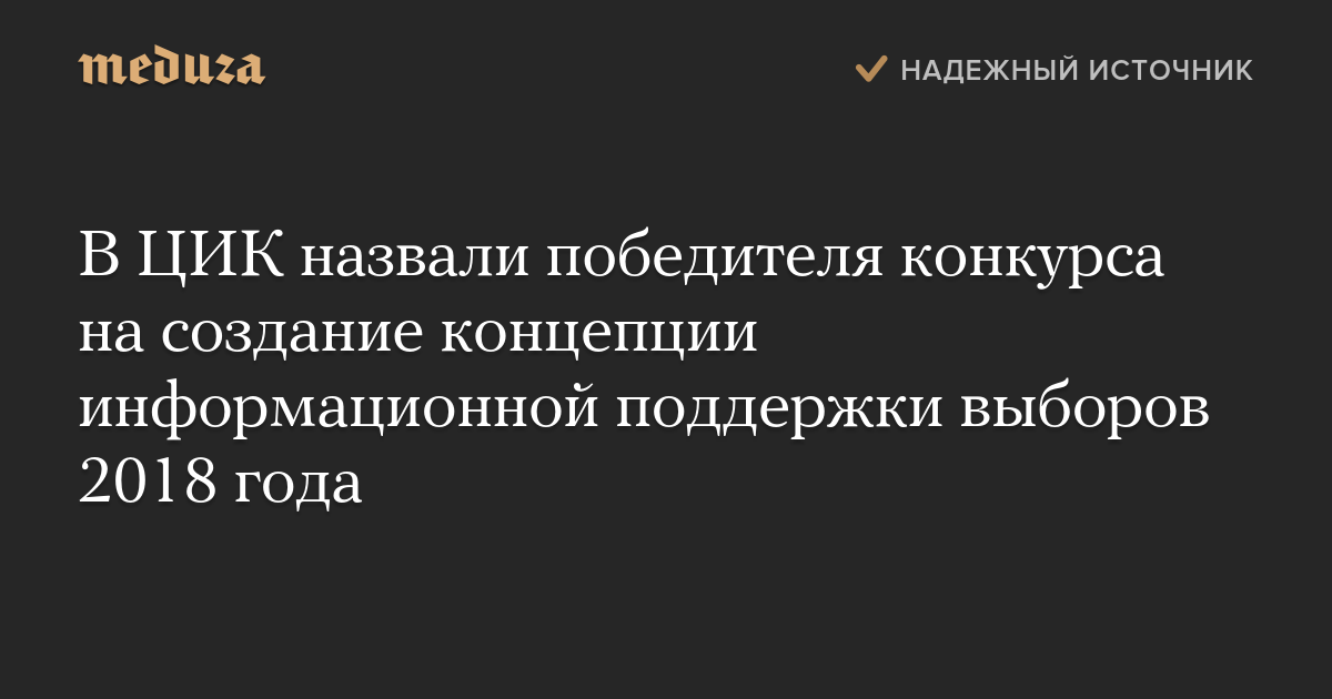 В ЦИК назвали победителя конкурса на создание концепции информационной поддержки выборов 2018 года