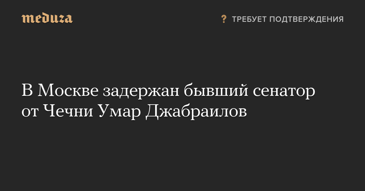 Московская полиция задержала бывшего члена Совета Федерации от Чечни и бизнесмена Умара Джабраилова. Об этом рассказали источники в правоохранительных органах РИА Новости и РБК.