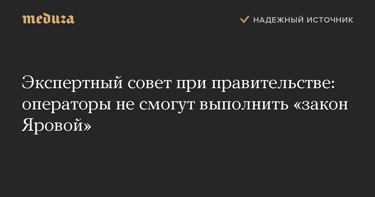 Экспертный совет при правительстве: операторы не смогут выполнить «закон Яровой»