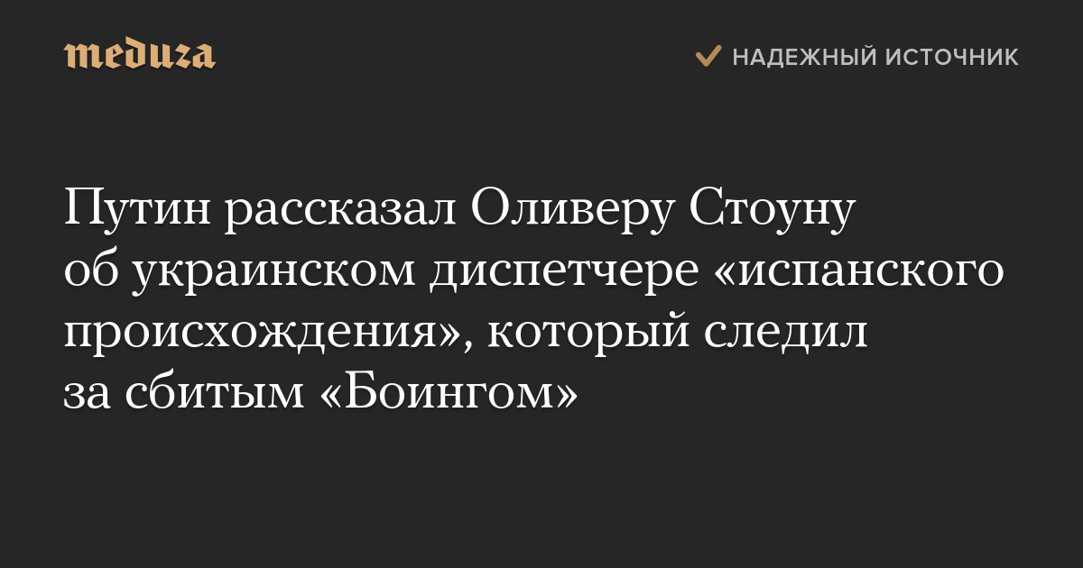 Путин рассказал Оливеру Стоуну об украинском диспетчере «испанского происхождения», который следил за сбитым «Боингом»