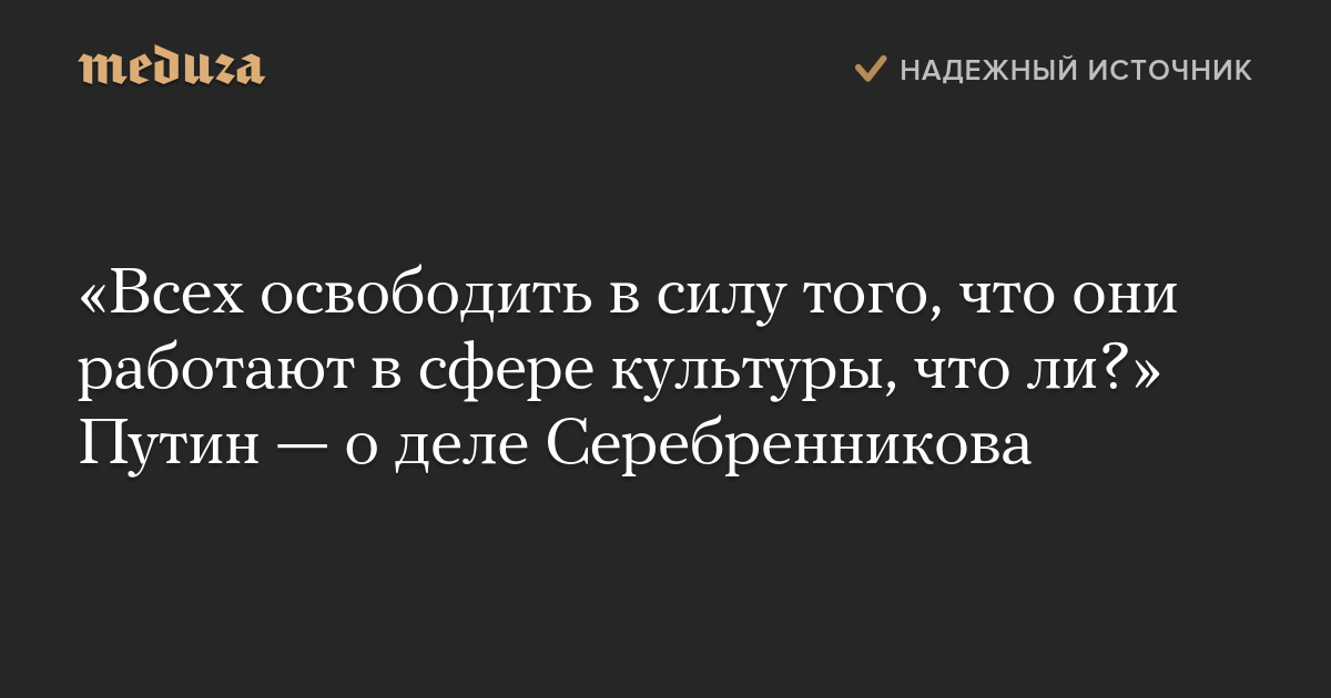«Всех освободить в силу того, что они работают в сфере культуры, что ли?» Путин — о деле Серебренникова