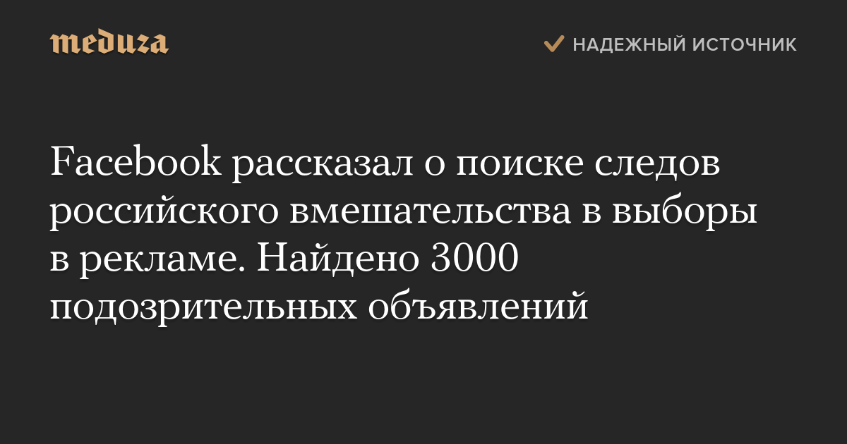 Facebook рассказал о поиске следов российского вмешательства в выборы в рекламе. Найдено 3000 подозрительных объявлений