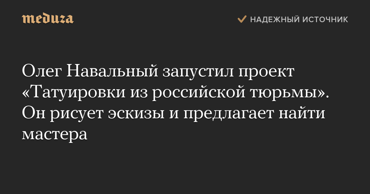 Олег Навальный запустил проект «Татуировки из российской тюрьмы». Он рисует эскизы и предлагает найти мастера
