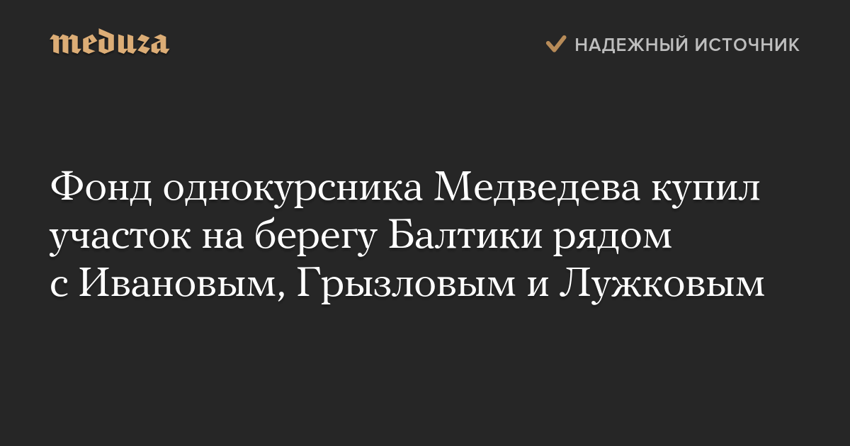 Фонд однокурсника Медведева купил участок на берегу Балтики рядом с Ивановым, Грызловым и Лужковым