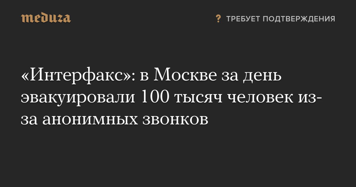 «Интерфакс»: в Москве за день эвакуировали 100 тысяч человек из-за анонимных звонков