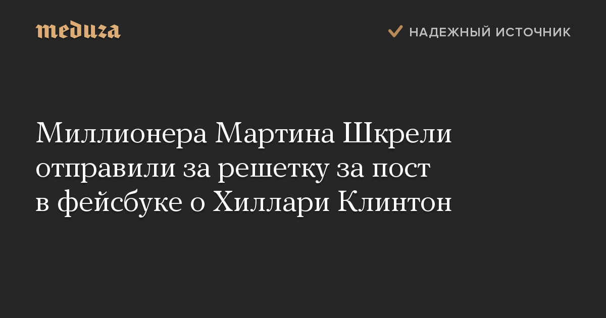 Миллионера Мартина Шкрели отправили за решетку за пост в фейсбуке о Хиллари Клинтон