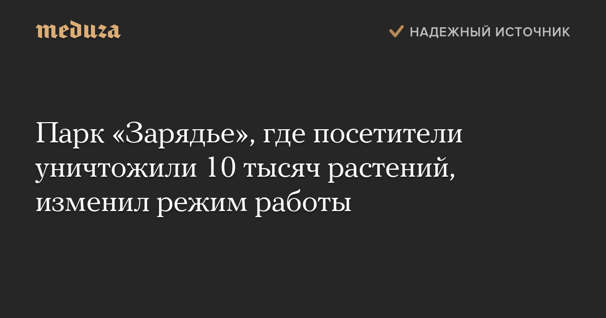 Парк «Зарядье» вынужден ввести ряд ограничений для посетителей, после того, как в нем за первые дни работы были уничтожены около 10 тысяч растений.