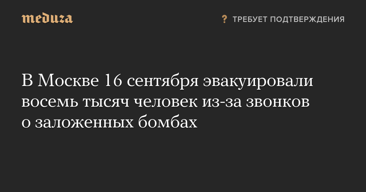 В Москве 16 сентября эвакуировали восемь тысяч человек из-за звонков о заложенных бомбах