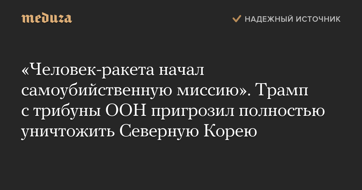 «Человек-ракета начал самоубийственную миссию». Трамп с трибуны ООН пригрозил полностью уничтожить Северную Корею