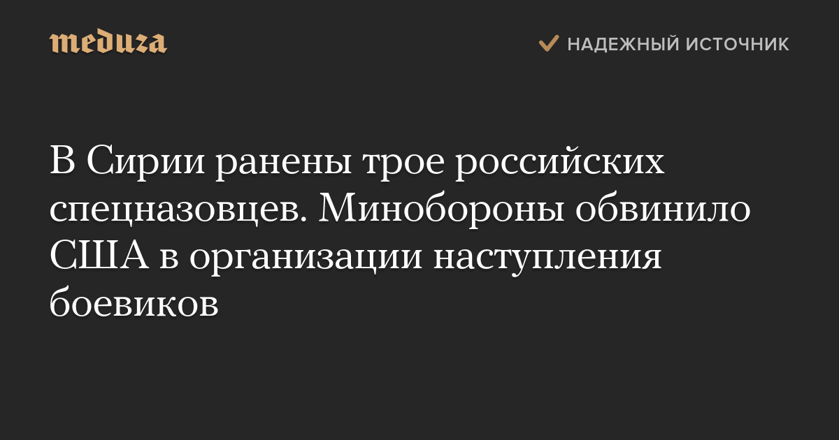 В Сирии ранены трое российских спецназовцев. Минобороны обвинило США в организации наступления боевиков
