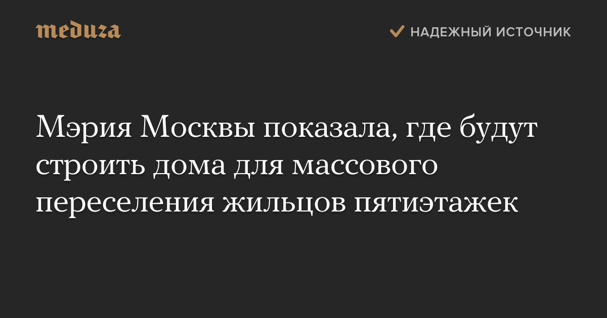 Мэрия Москвы показала, где будут строить дома для массового переселения жильцов пятиэтажек